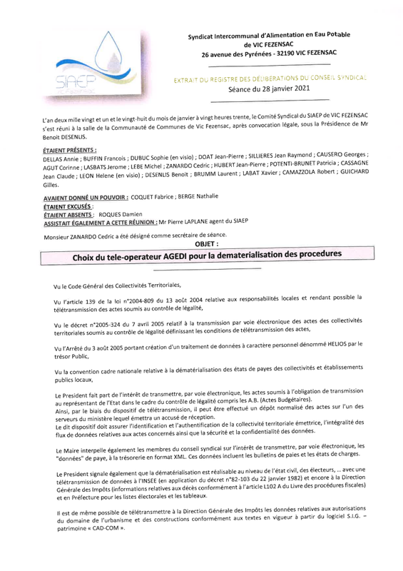 2021 01 28 Deliberation Choix Teleoperateur Agedi Pour Dematerialisation