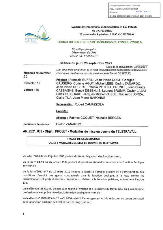 2021 033 Projet De Deliberation Modalités De Mise En Oeuvre Du Teletravail