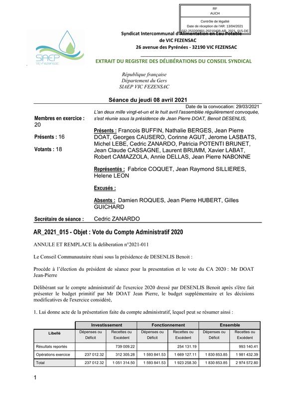 2021 015 Deliberation Ca 2020 Annule Et Remplace
