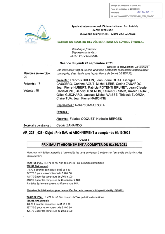 2021 028 Deliberation Prix Eau Et Abonnement A Compter Du 01 10 2021
