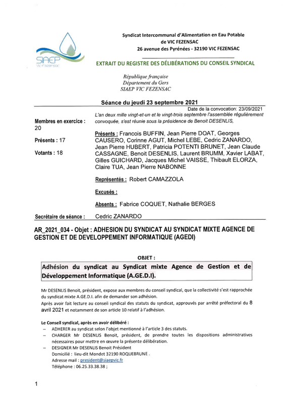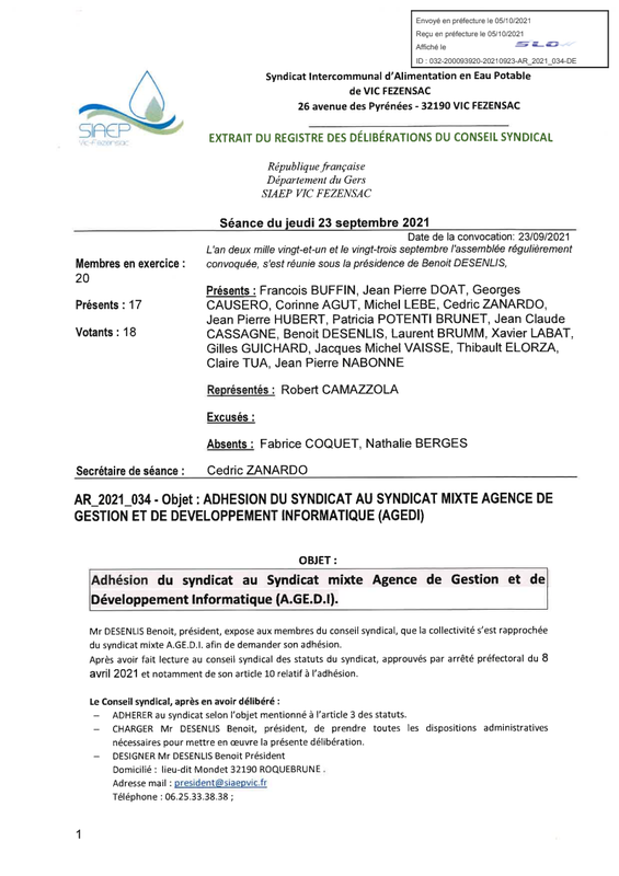 2021 034 Deliberation Adhesion Du Syndicat Au Syndicat Mixte Agence De Gestion Et De Developpement Informatique (Agedi