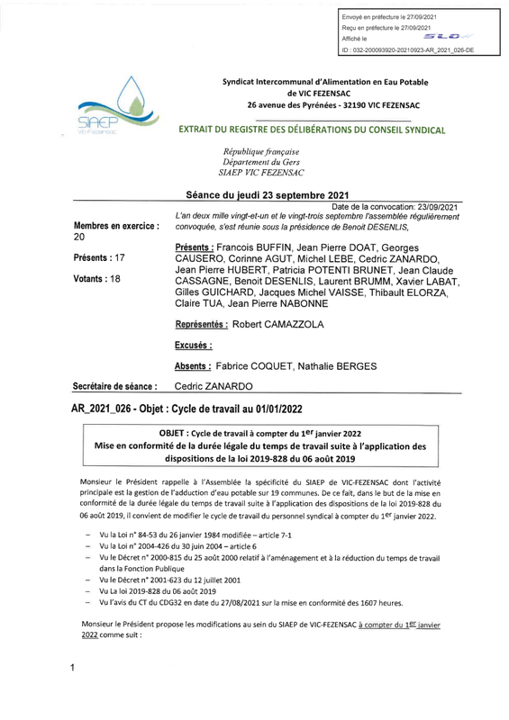 2021 026 Deliberation Cycle De Travail Au 01 01 2022
