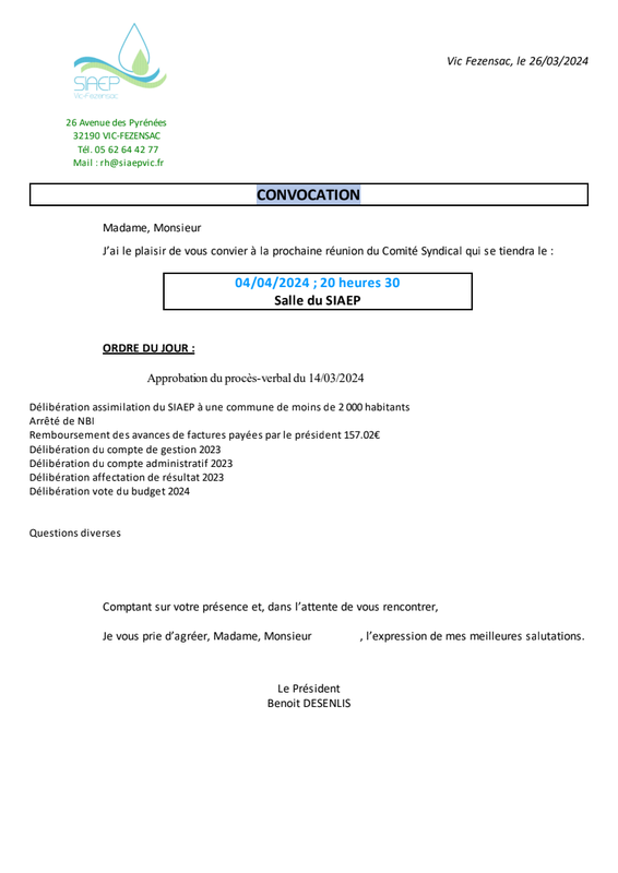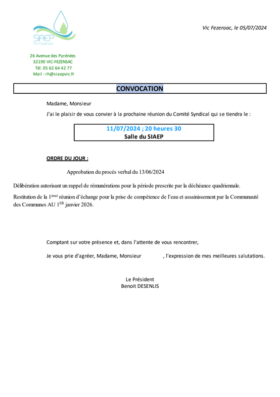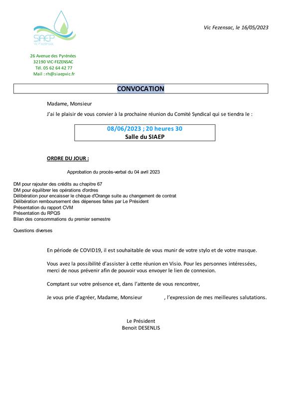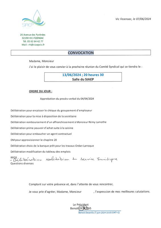 Convocation Du Cs Du 13 Juin 2024 Signe Et +