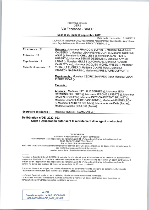 De 2022 023 Délibération Autorisant Le Recrutement D Un Agent Contractuel