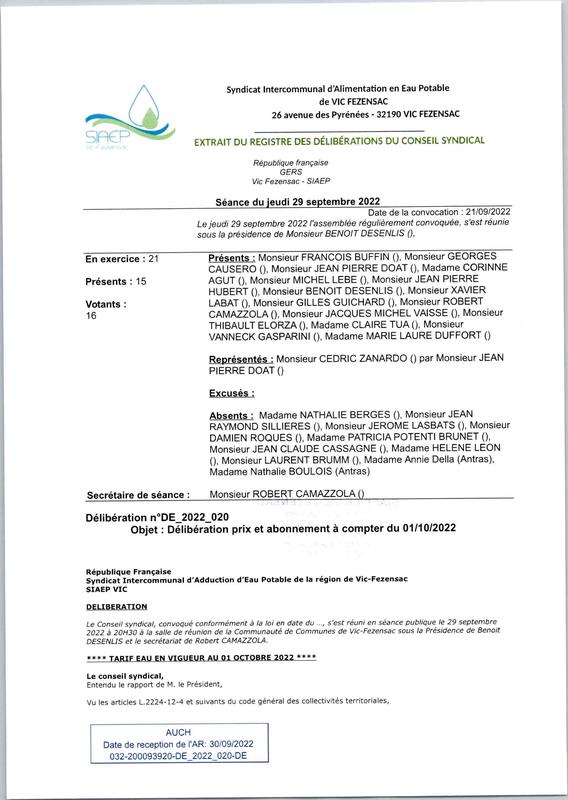 De 2022 020 Délibération Prix Et Abonnement À Compter Du 01 10 2022