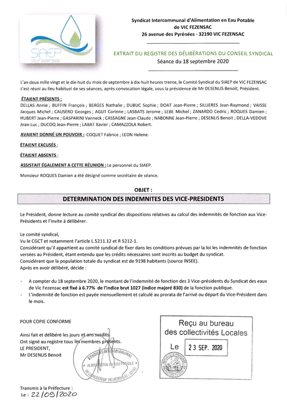 Deliberation 18 09 2020 Determination Des Indemnités Des Vice Presidents Siaep