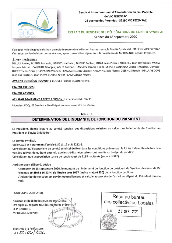 Deliberation 18 09 2020 Determination De L Indmnite De Fonction Du President Siaep