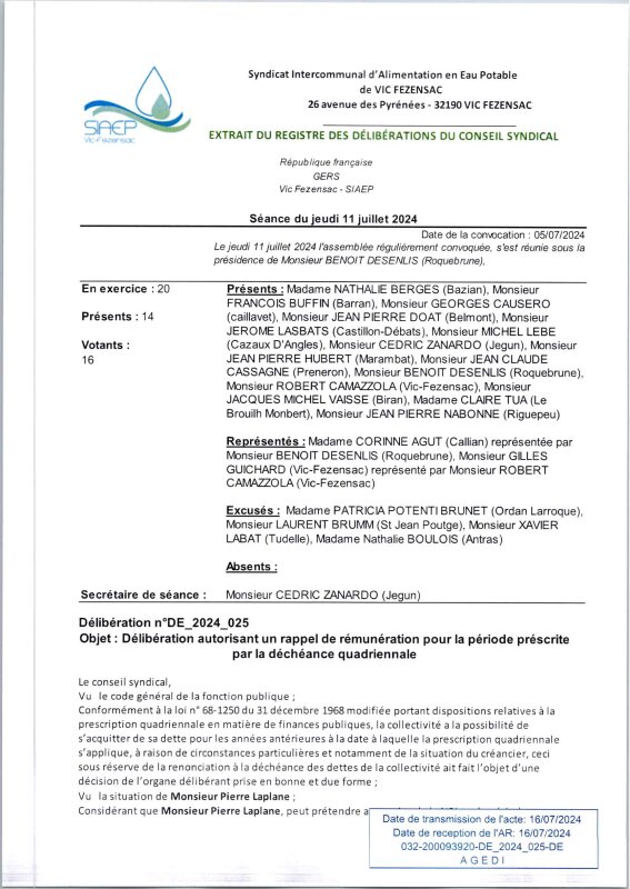 De 2024 25 DéLibéRation Autorisant Un Rappel De RéNuméRationpour La PéRiode PréScrite Par La DéChéAnce Quadriennale