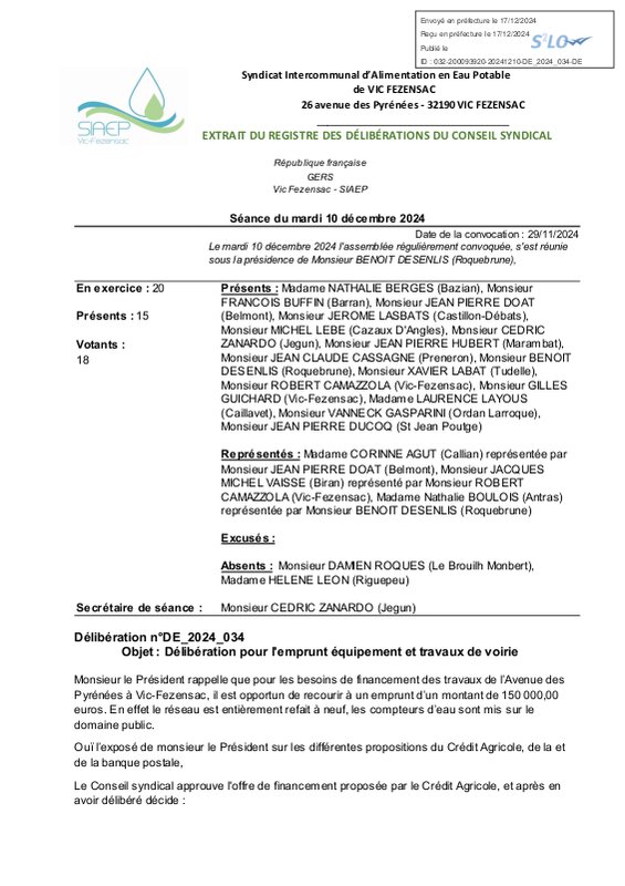 De 2024 34 DéLibéRation Pour L'Emprunt ÉQ Uipement Et Travaux De Voirie Signed
