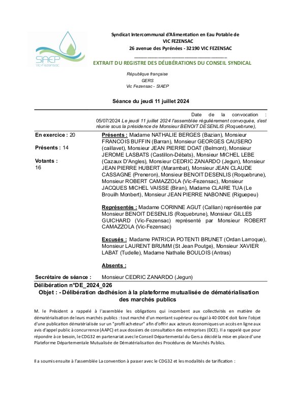 De 2024 026 DéLibéRation D'AdhéSion À La Plate Forme MutualiséE De DéMaterialisation Des Mp21