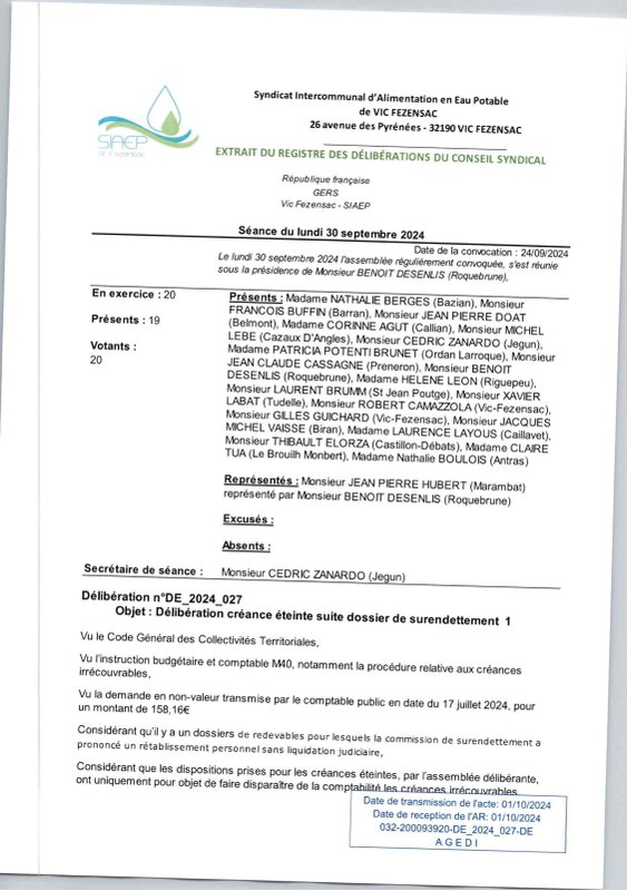 De 2024 027 DéLibéRation Creance Eteinte Dossier De Surendettement 1