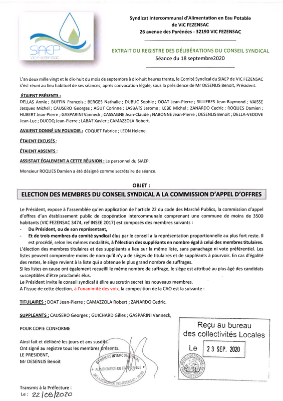 Deliberation 18 09 2020 Election Des Membres A La Commission D Appel D Offres Siaep
