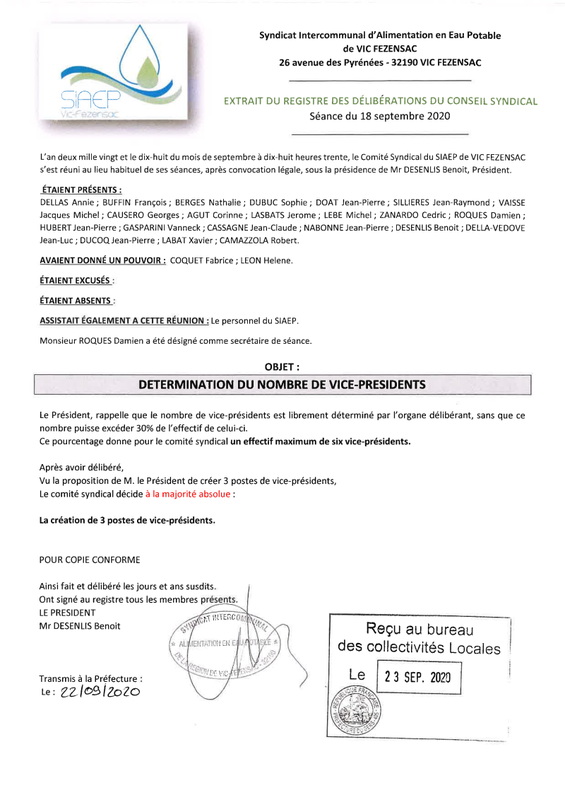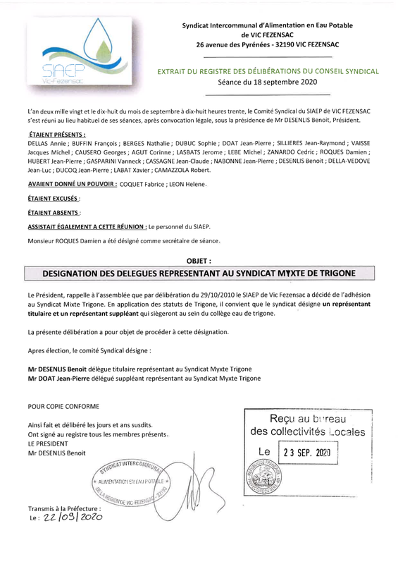 Deliberation 18 09 2020 Designation Des Delegues Au Syndicat Mixte De Trigone Siaep