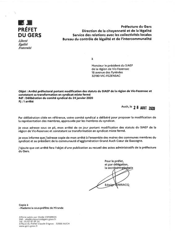 Prefecture Arrete Modif Statut Du Siaep De Vic