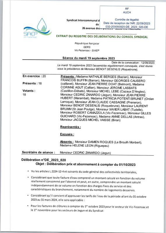 De2023 020 DéLibéRation Prix Et Abonnement À Compter Du 01 10 2023