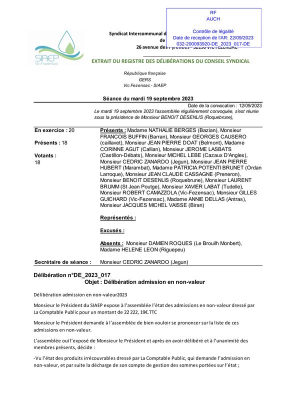 De 2023 017 DéLibéRation En Non Valeur